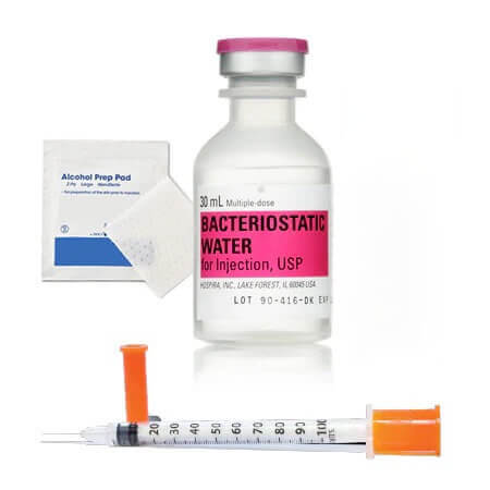 Almacenamiento: Conserve el agua bacteriostática a temperatura ambiente. Conserve todos los componentes en su embalaje original hasta su uso.